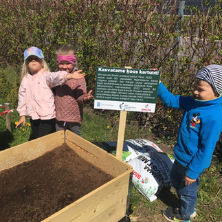 Laste abil panime kartuli maha, kastsime ning sügisel saime päris korraliku saagi - kaks ämbritäit kartuleid, mida hoolega pesime ning hiljem õuealal suures potis keetsime ning või ja tilliga ka ära sõime. Kuna kartulit oli aga palju, saime veel järgmisel päeval kartulikotlette teha. Lastele maitsesid omakasvatatud kartulist tehtud toidud väga.